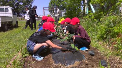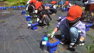 5/7(水)農業体験を行いました。 投稿: 大芦小学校 (2025/05/07) 本日、2・3時間目に学校応援団の皆さんにご指導いただきながら、2年生は「ミニトマト」、3年生は「ナス」を植えました。初めて野菜の苗の植え付けを体験し、皆うれしそうに自分たちの苗に水をあげていました。「ミニトマト」「ナス」のこれからの成長がとても楽しみです。 -