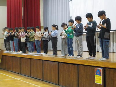 「メリーさんのひつじ」では、今まで学習したリコーダーの音階を生かし、リズムに乗った演奏を披露しました。