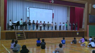 最後は全校児童で「もみじ」を歌いました。体育館を、美しい歌声が包んだ瞬間でした。