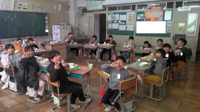 子どもたちからは、「今日のケーキが楽しみ!」などの声もあれば、「クリスマスデザートは楽しみだけど、給食が最後なのはかなしいなあ」など、学校としてはうれしい声も聞こえてきました。