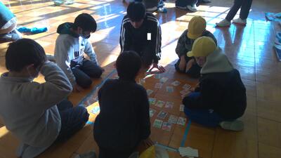 「遊び」クラブは、来週の3年生の見学の準備を終えると、カルタ遊びを楽しんでいました。