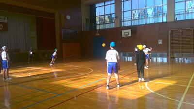 「球技」クラブは、今日は体育館でドッジボールを行いました。
