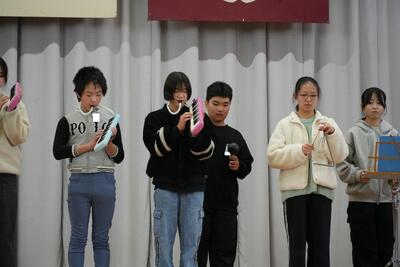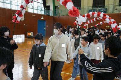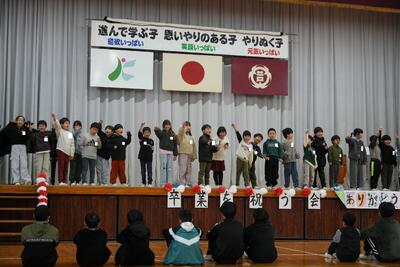 在校生からはメッセージカードのプレゼントや歌や合奏、呼びかけ等を贈り、6年生へ今までの感謝の気持ちを伝えました。