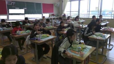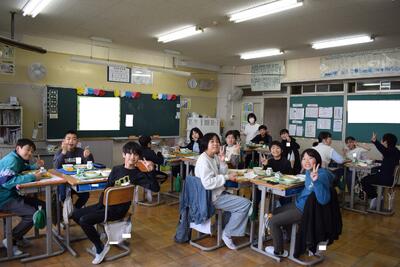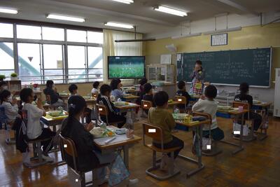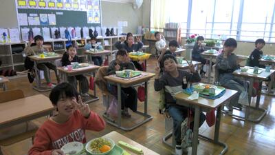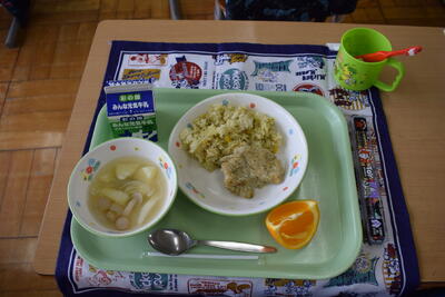 【4/10(金)更新】令和8年度初めての給食でした(*^o^*) 投稿: 大芦小学校 (14:32) 本日、令和8年度初めての給食でした。献立は「カレーピラフ」「牛乳」「鶏肉のレモンバジル焼き」「ベジタブルスープ」「清見オレンジ」でした。大芦小の子どもたちは、久しぶりの給食をよーく味わいながらおいしそうに食べていました。1年生が加わり、全校児童で給食を食べれる日が今からとても楽しみです。 -