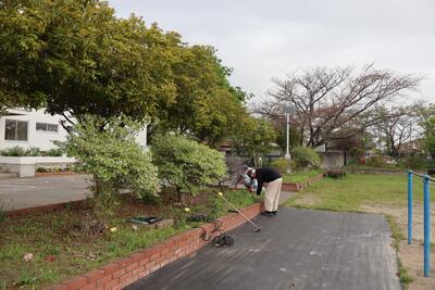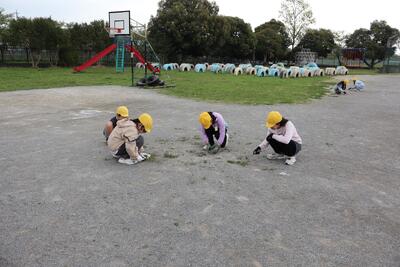 大芦小は自然豊かな校庭が自慢ですが、校庭周りの草が伸び、校庭まで広がってきてしまいます。
