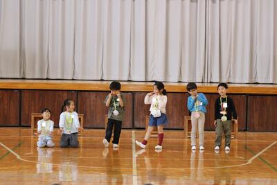 2・3年生はメダルやメッセージカードのプレゼントをしました。